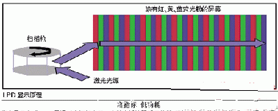 激光熒光掃描顯示系統(tǒng)LPD,也叫做激光陰極射線管LCRT(LaserCathodeRayTube),基本原理是用半導(dǎo)體激光器代替陰極射線顯像管的熒光屏來實(shí)現(xiàn)的一種新型顯示器件。形式上,這種顯示方式與LSD類似:主要技術(shù)特點(diǎn)都是激光光束持續(xù)掃描屏幕。卻別是,LSD采用三原色直接掃描;LPD則采用藍(lán)色或者更高頻率的激光光速掃描擁有紅綠藍(lán)等多種原色熒光粉的屏幕。在美國,采用LPD(LaserPhosphorDisplay,激光熒光顯示)技術(shù)的顯示產(chǎn)品已經(jīng)被安裝到了紐約的鷹牌服裝店里。LPD已經(jīng)在戶外展示領(lǐng)域嶄露頭角。