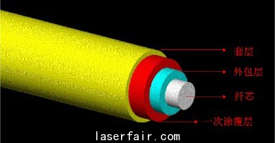 光纖=中心部分(芯Core)+同心圓狀包裹層(包層Clad)+涂覆層