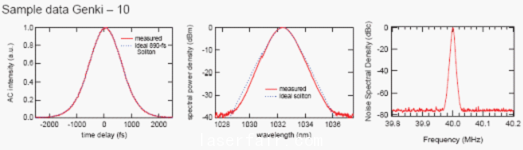 高質(zhì)量頻域與時(shí)域脈沖波形:不存在脈沖臺(tái)階或者伴線,干凈的SECH 2光學(xué)頻譜,不存在kelly伴帶,具有高度穩(wěn)定性和重復(fù)性的中心波長,帶寬以及頻譜形。