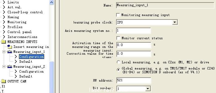 在TO_Measuring Input中,Measuring_input_1 的HW address 和Bit number中分別輸入521和1,設(shè)置快速測(cè)量輸入點(diǎn)測(cè)量1(X122.8)。