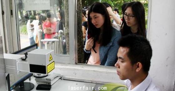 學(xué)生們排隊(duì)將自己的貴重物品拿來做專屬標(biāo)識(shí)