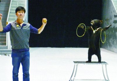 在“皮膚光影秀”中,觀眾可以看見武漢雜技團這20年來的精彩獲獎節目的展示,就連大熊貓英英的影像也被活靈活現的展示在屏幕中。工作人員介紹,雜技廳目前整個外墻激光皮膚秀正在緊張調試,預計將會在本月25日與觀眾見面。