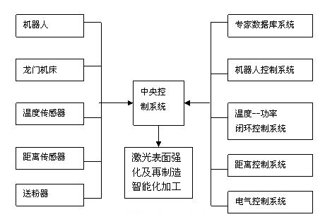 通過加裝溫度傳感裝置,激光測距儀,再輔以激光先進性制造工藝專家系統(tǒng),可以實現(xiàn)激光加工過程的距離、溫度、軌跡、處理效果的智能化控制,控制系統(tǒng)的示意圖如圖2。