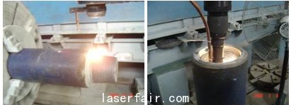 如圖4所示,海洋鉆井平臺用一軸類零件使用軸承部位磨損,尺寸減小,需對其進行尺寸修復(fù)。傳統(tǒng)的堆焊方法容易產(chǎn)生氣孔、裂紋等缺陷,且結(jié)合強度較差,易產(chǎn)生脫落,熱影響區(qū)大。激光熔覆加工后,熔覆層硬度為HRC58-60,熔覆層無裂紋、氣孔,且與基材呈冶金結(jié)合,熔覆層組織致密,耐磨性能高。經(jīng)使用后表明,激光熔覆后該軸的使用壽命提高了2-3倍。