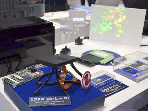 CEATEC 2012展會上,在松下展臺上亮相一款100流明的激光投影儀樣機模型。采用激光光學成像系統,是世界最薄的微型投影機,只有 7.5毫米的厚度,可以投射出800×480分辨率的影像。