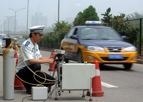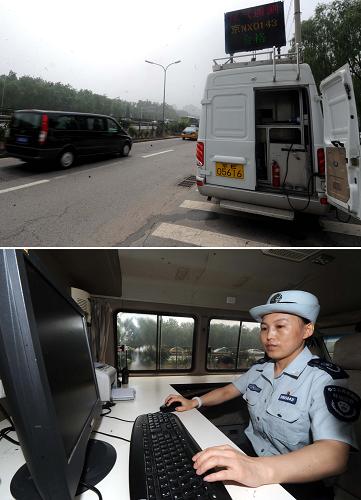 6月26日,北京市東四環(huán)輔路一個檢測點實時顯示經(jīng)過車輛的尾氣排放檢測結(jié)果(上圖);檢測點的工作人員在監(jiān)控實時檢測數(shù)據(jù)(下圖,拼版照片)。當(dāng)日,為進(jìn)一步控制機(jī)動車污染排放、改善空氣質(zhì)量,北京啟動全市范圍內(nèi)的機(jī)動車排放激光遙感檢測專項執(zhí)法活動。激光遙感檢測是利用遙感設(shè)備對機(jī)動車尾氣中不同物質(zhì)的吸收光譜進(jìn)行分析,從而檢測出尾氣中各種污染物的濃度值。它能夠在不影響機(jī)動車正常行駛的情況下,對機(jī)動車的動態(tài)排放進(jìn)行實時檢測。據(jù)統(tǒng)計,北京市目前機(jī)動車保有量已超過530萬輛,機(jī)動車排放污染已經(jīng)成為影響北京空氣質(zhì)量的主要污染源。特別是機(jī)動車排放產(chǎn)生的PM2.5約占北京市全部PM2.5來源的22.2%。