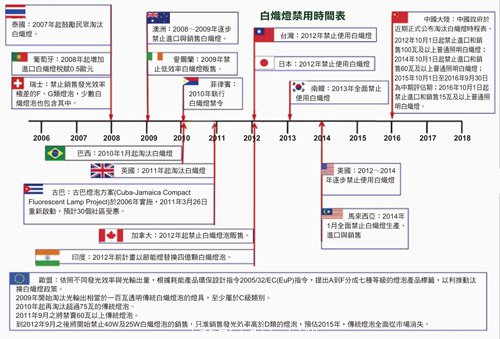 圖1 各國(guó)禁用白熾燈時(shí)程表 資料來(lái)源:LEDinside(03/2013)
