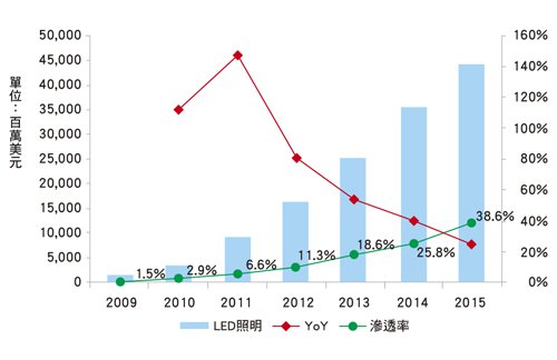 圖3 全球LED照明產(chǎn)值預(yù)估 資料來(lái)源:IEK,03/2013
