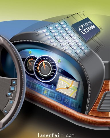 許多新興汽車設(shè)計(jì)采用單個(gè)屏來為用于駕駛控制的所有顯示儀表提供背光照明。通常,儀表盤的 LED 背光照明與信息娛樂系統(tǒng)是共用的,從而形成一種便于閱讀的一體型控制面板。同樣,包括汽車、火車和飛機(jī)在內(nèi)的諸多交通工具也在面向后方的座位上裝有用于為乘客提供電影、視頻游戲等娛樂服務(wù)的 LCD 顯示器。歷史上,此類顯示器采用 CCFL 背光照明;然而,人們開始越來越多地采用非常扁平的白光 LED 陣列來取代這些相對(duì)龐大的燈泡設(shè)計(jì),以提供更加精確和可調(diào)的背光照明以及更長的使用年限。