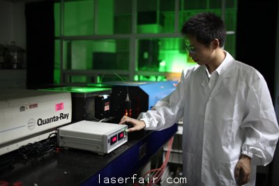 照射在中科院武漢物理與數學研究所實驗室上空中的激光