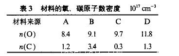 從表中可看出,D材料與前3種材料的碳,氧含量無(wú)大的差別。因而,導(dǎo)致前述差異的原因可以排除氧,碳雜質(zhì)含量的不同。可能的原因是A,B,C3種材料中金屬雜質(zhì)含量較多,高溫過(guò)程促進(jìn)了金屬雜質(zhì)與氧、碳沉淀的結(jié)合,使原本"潔凈"的沉淀成為有效的復(fù)合中 心,從而使高溫吸雜達(dá)不到其應(yīng)有的目的.另外,這一差異也可能是材料中不同生長(zhǎng)缺陷在高溫過(guò)程中發(fā)生不同演化造成的.