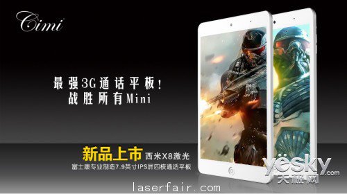 最強3G通話平板 西米X8激光上市西米作為國產平板電腦的后起之秀,在最近發布了一款非常優秀的產品,西米X8激光3G通話平板,西米勵志于將其打造成為最強的3G通話平板,擊敗所有mini。