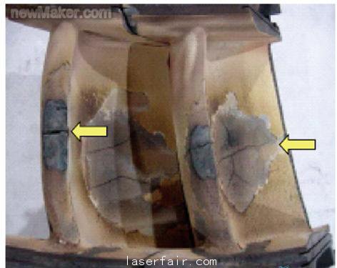 圖5采用LENS技術修復的黑鷹直升機發動機葉輪的葉片。修復位置為葉片的導向邊,導向邊極易受到磨損以及外來損害(FOD)。修復的部分具有近終型輪廓,且性能優于原始材料的性能。經低周疲勞測試:在5000~50000r/min的循環應力作用下,承受了5000次交變應力無事故而通過測試。