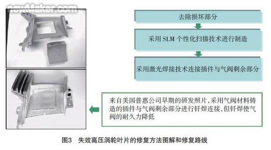 傳統的修復方式為移除損壞的閥門中心部分,然后采用粉末冶金的方法鑄造移除的閥門中心部分,再采用釬焊技術焊合鑄造插件和噴氣閥的剩余部分。這一修復工藝的缺點是鑄造閥門的中間部分需要開模,加工過程所需的時間長,另外經釬焊工藝后,噴氣閥的耐久力變差。因而提高修復后的噴氣閥的耐久力是全球航空航天領域工程技術人員努力的目標。新型的工藝是通過SLM技術制造移除的噴氣閥中間部分,在采用激光焊接技術連接SLM制造的插件和剩余的噴氣閥部分[13]。