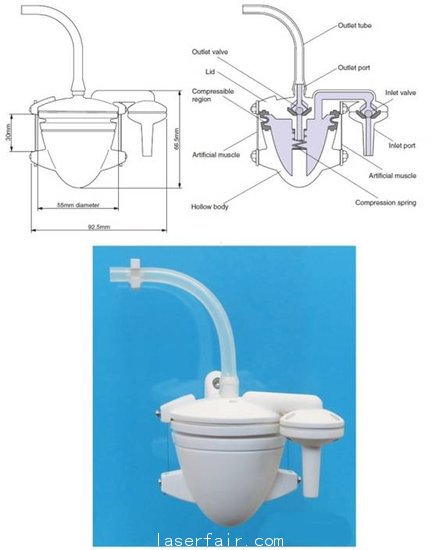 這種機器“心臟”又被稱為生物啟發泵(biologically inspired pump)仍處于開發階段,它是基于心臟的結構和功能原理進行設計的。科學家測試證明,機器“心臟”只需2毫升新鮮尿液即可執行連續33次動作,而且它可以以3.5伏的電壓充電。