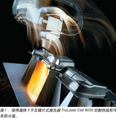 在汽車行業(yè),切割熱成形零部件已經成為非常重要和快速發(fā)展的一種應用。然而,當高強度零部件(拉伸強度通常大于 1500 MPa)大量減少,乘客安全性提升,新的加工挑戰(zhàn)也隨之而來——傳統(tǒng)剪切工具損耗快,要剪切邊緣通常有裂紋的困擾。最終,激光加工是唯一能在保證高產量的情況下切割熱成形部件的加工方法。3千瓦和4千瓦碟片式激光器中的高光束質量(4 mm-mrad)是切割超強三維不見的絕佳工具。在這種情況下,碟片式激光器和TruLaser Cell 8030搭配使用,一臺專門為熱成形切割市場設計的多軸系統(tǒng)誕生了(見圖1)。多軸系統(tǒng)卓越的光束質量、短波長以及高度動態(tài)和穩(wěn)定的特點,為制造商提供了高效的生產方式,并能適應要求極高的汽車制造環(huán)境。