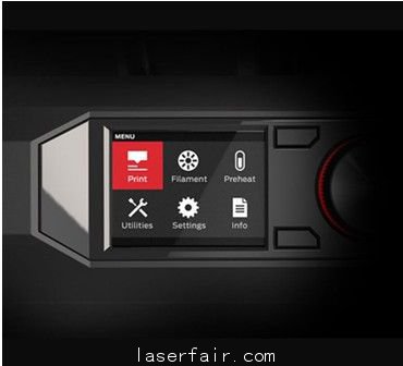 Makerbot Replicator 桌面級(jí)3D打印機(jī)采用全新的打印平臺(tái)、智能?chē)婎^、運(yùn)動(dòng)控制器和光杠設(shè)計(jì);內(nèi)置攝像頭和診斷裝置,輔助調(diào)平打印托盤(pán),比上一代打印機(jī),體積增加了11%,速度增加了11%;此外,擁有3.5英寸全彩液晶顯示器,內(nèi)置用戶界面,直觀的轉(zhuǎn)盤(pán),并且還能夠訪問(wèn)模型庫(kù),直接預(yù)覽3D模型文件。