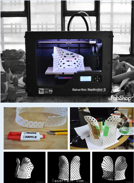 3D文件必須被剪切以適合你的機器,伯尼爾的繆斯胸衣被打印成四個部分,用環氧樹脂膠來組裝,在修復的時候并用膠帶把這四個部分固定。按照修去多余的部分,然后你就可以用漂亮的蕾絲緞帶來修飾它了。
