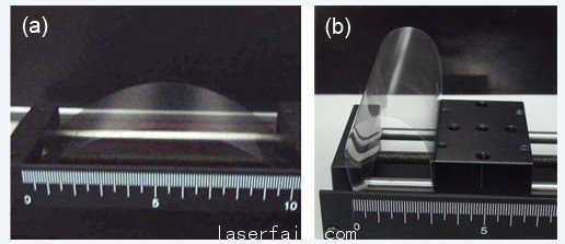 激光處理前后玻璃基板彎折測試,(a)激光處理前;(b)激光處理后。