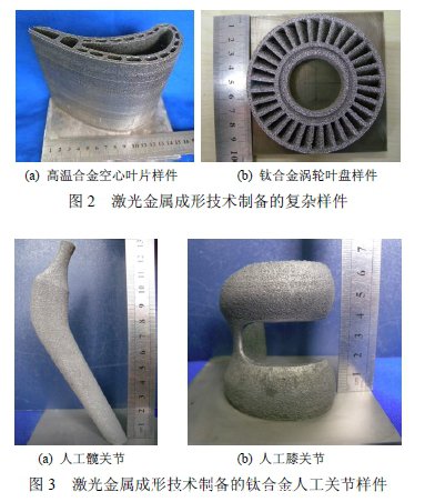采用DZ125L、FGH96 高溫合金和鈦合金,對(duì)空心渦輪葉片和整體渦輪葉盤的激光金屬成形工藝進(jìn)行了研究。采用粉末負(fù)離焦的形貌自穩(wěn)定效應(yīng)、組合式掃描、逐層降功率、中間高兩邊低的掃描速度策略等成形技術(shù),用激光金屬成形技術(shù)制備出了較高表面質(zhì)量的某型雙工質(zhì)復(fù)雜空心葉片樣件和形狀復(fù)雜的鈦合金閉式整體渦輪葉盤樣件(圖2),以及鈦合金人工關(guān)節(jié)樣件(圖3)。