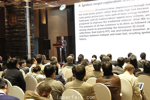 3月17日上午,大會舉行了開幕式,賀賢土在開幕式上致辭,開幕式由朱健強主持。美國能源部前首席科學家David H. Crandall博士、賀賢土、日本光產業創成大學院大學的Edward Teller獎得主Kunioki Mima教授、以色列內蓋夫原子能研究中心的Edward Teller獎得主Dov Shvarts教授和日本大阪大學Kazuo A. Tanaka教授分別就國際上激光慣性約束聚變領域的最新科學與技術進展做了精彩的大會報告,并就實現慣性約束聚變所需的激光驅動器總能量提出了預判。