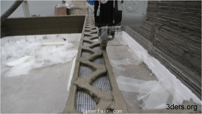 匯信使用的巨型3D打印機(jī)體積為150(L) x 10(W) x 6.6(H) ,它能在一小時(shí)之內(nèi)打印出完整的建筑,使用的“墨水”是高標(biāo)號(hào)水泥和玻璃纖維,像傳統(tǒng)打印機(jī)一樣,也是將那些材料一層一層的積累起來。