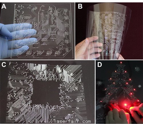 由液態(tài)金屬打印機(jī)打印并制作的柔性電路板及帶光電功能的圣誕電子賀卡