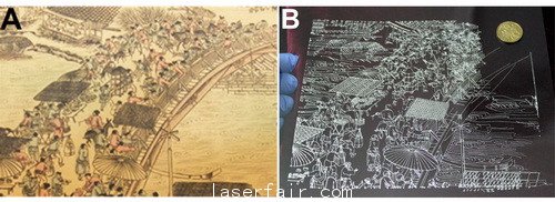 打印機(jī)針對(duì)中國(guó)古典名畫(huà)《清明上河圖》(左)打印出的電子圖案(右)