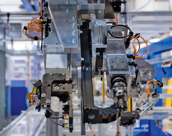 各個組件在激光焊接模塊中夾緊并焊接。中心平臺和激光定位單元構(gòu)成了設(shè)備的核心。在這兩個單元中,每個單元都有兩個獨立的應(yīng)用于激光光學(xué)的五自由度伺服運動系統(tǒng)構(gòu)成。下面的中心平臺,每個包含 8 個用于精確夾緊工具的伺服軸。為了確保工藝可靠性,測量系統(tǒng)安裝在可更換的工具平臺上。這些系統(tǒng)通過帶增量編碼器接口的 EtherCAT 端子盒 EP5101 和 EtherCAT端子盒 EP1018 及 EP3174 連接到控制器。