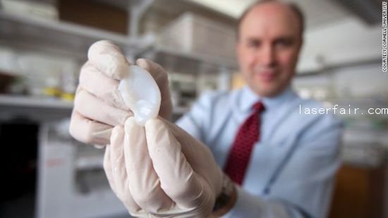 美國維克森林醫學院的詹姆斯-尤正在研制一種能直接在燒傷患者的傷口上打印皮膚的打印機。“油墨”由酶和膠原質組成,它們與組織細胞和皮膚細胞分層打印出來,就會形成移植皮膚。該科研組打算研制一種便攜式打印機,以便在偏遠地區和戰區,可以直接用來在患者的傷口上打印皮膚。