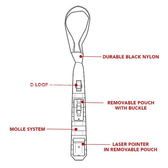 如果你某一天突然想用一種別致的方式顯示自己是“成功人士”,該怎么辦呢?也許你應該考慮一下這款奇特的 Laser-Guided Tactical Necktie(激光制導戰(zhàn)術領帶)。激光制導戰(zhàn)術領帶看上去一派軍旅風范,上面有戰(zhàn)術背心上常見的掛扣和兩個小包,設計師稱這是軍用規(guī)格的“模塊化輕型攜行裝備”。