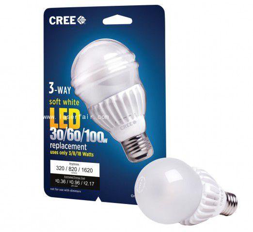 日前,CREE公司已經推出了最新的LED燈泡,它擁有3段功率,3個亮度調整級別。這種新產品可以在30W、60W和100W傳統白熾燈提供的亮度之間進行切換,在同等亮度下,號稱比傳統白熾燈泡節電90%。
