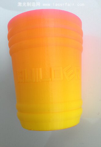 Builder 3D打印機上將會安裝一種雙喂料(Dual-Feed)擠出機。注意!這可不是兩個擠出頭哦,它是用兩種材料/顏色通過一個噴嘴擠出。這種設置使得它可以使用Builder新的顏色混合工具混合顏色。請看下面的圖片,這個花瓶是是用黃色和粉紅色兩種線材打印的,Builder在打印文件中加入了“混色”代碼,于是最終生成了一只漂亮的三色花瓶:粉紅色、橙色和黃色。