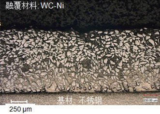 激光融覆興起于20世紀80年代,是一種先進的激光表面改性技術。它通過預置或同步方式在基材表面添加具有特定功能的熔覆材料,利用高能量密度104~106W/cm2)的激光束照射融覆材料,使之與基材表面薄層一起熔凝成為冶金結合的添料熔覆層,顯著改善基體材料表面的耐磨、耐蝕、耐熱、抗氧化和抗疲勞等性能。