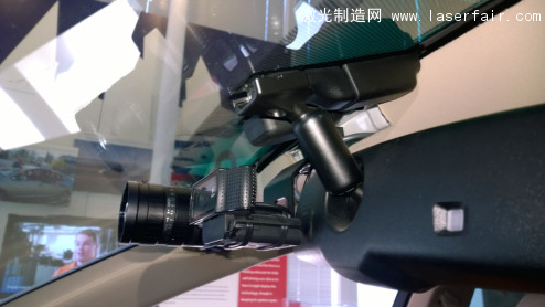 在車內還可以看到兩個攝像頭,一個向內一個向前。其中設在后視鏡上、向前的攝像頭帶有一個自動對焦的專業鏡頭。這是方向傳感器,用于判斷車輛前行方向,具體作用類似于人體的內耳(負責傳感頭部速度)。