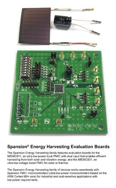 Spansion的能量采集系列包括MB39C811,它是一款超低功耗的雙輸入降壓轉換器PMIC,可高效采集光能和動能;MB39C831,它是一款超低電壓的升壓轉換器,用于采集光能或熱能。Spansion的能量采集系列能夠與Spansion的FM0+微控制器(MCU)以及超低功耗微控制器(基于ARM Cortex-M0+內核)進行無縫配合,適用于工業范圍和對成本敏感并要求低功耗的應用。