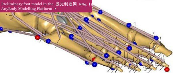 這些標記出來的點的運動,結合腳底壓力點上的分析,形成的數據被儲存在項目的信息系統里。隨后,該項目的軟件(POD-CAD)使用這些數據和病人的臨床信息來設計定制化的矯形器3D模型。最后,將3D模型輸入3D打印機制造出定制化的足矯形器。整個過程只需一天即可完成,Glasgow Caledonian大學的項目協調人Jim Woodburn教授說。