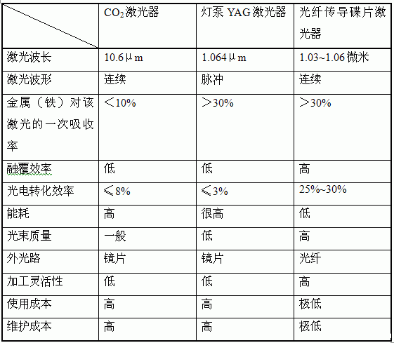 相對傳統的激光熔覆設備采用的激光器是CO2激光器和燈泵YAG激光器,通快公司采用的是新一代光纖傳導碟片激光器。同等條件下碟片激光器具有如下優勢: