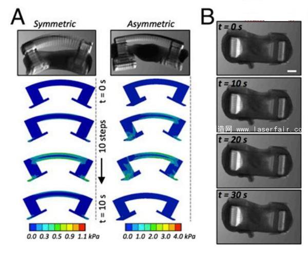 “生物機器人的結構是使用光固化(SLA)技術打印出來的合成水凝膠組成的,它的制造時間很短,具有潛在的可擴展性。”研究團隊在報告中解釋道。