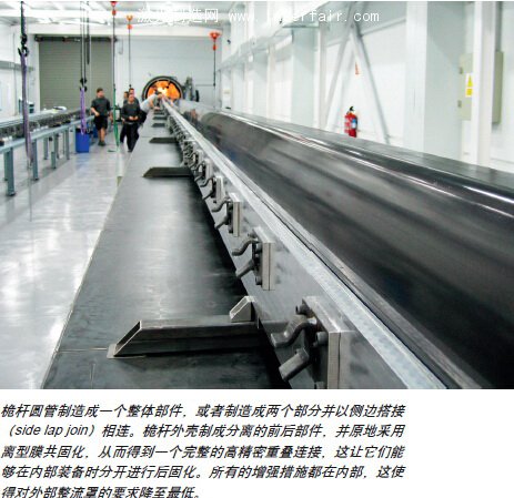 桅桿圓管及橫支桿采用預(yù)浸料生產(chǎn),預(yù)浸料采用手工鋪放在鋁質(zhì)陰模中。制品在熱壓罐中以3-6 巴的壓力和100-120℃的溫度固化。高精密的模具顯著減少了后處理的工作量,減少并優(yōu)化了圓管重量。