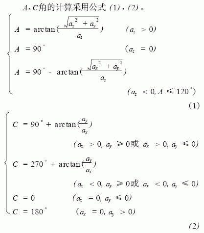 工作臺(tái)(工件)相對(duì)刀具轉(zhuǎn)動(dòng),其轉(zhuǎn)角以順時(shí)針?lè)较驗(yàn)檎较颉⒌遁S矢量a 繞軸順時(shí)針轉(zhuǎn)動(dòng)C角到 平面上, 再將刀軸矢量繞Xc軸順時(shí)針轉(zhuǎn)動(dòng)A角到與Zc坐標(biāo)方向一致,如圖2所示(這樣,轉(zhuǎn)動(dòng)可以保證 。這樣就完成了刀軸矢量的轉(zhuǎn)換,即刀具相對(duì)于工件的轉(zhuǎn)動(dòng)或擺動(dòng)。對(duì)于雙轉(zhuǎn)臺(tái)式五軸數(shù)控機(jī)床,為實(shí)現(xiàn)以上轉(zhuǎn)換,工作臺(tái)的動(dòng)作為工作臺(tái)繞C回轉(zhuǎn)軸順時(shí)針轉(zhuǎn)動(dòng)C角,工作臺(tái)A回轉(zhuǎn)軸順時(shí)針轉(zhuǎn)動(dòng)A角。