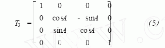 (3)刀軸矢量繞X 軸旋轉(zhuǎn)A 角,變換矩陣為