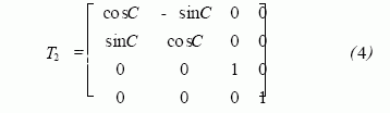 (2)刀軸矢量繞Z軸旋轉(zhuǎn)C角,變換矩陣為