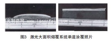 中國政府對激光再制造技術十分重視,在國際上起步早,有案可查的最早工作是國家科委主持的1991-1995年國家“八•五”科技攻關項目—冶金軋輥大面積激光修復。上海光機所王潤文、查洪奎、蘇寶榮,天津工業大學楊洗陳,重慶大學鄒至榮,吉林機電研究院房為捷等專家聯合攻關,在國內外首次成功地制造出激光大面積涂覆的軋輥,向世界展示出激光修復工業應用的巨大前景。20/21世紀之交,天津工業大學楊洗陳研究團隊進一步提出激光再制造技術理念。圖3是天津工業大學研發的激光大面積熔覆系統單道涂覆照片。#p#分頁標題#e#