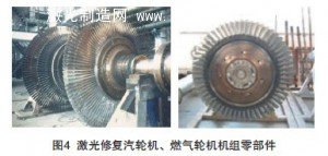汽輪機是火力發電的核心設備,由于高溫高熱特殊的工作條件,每年都需定期對損傷的機組零部件進行修復,如主軸軸徑、動葉片等,如圖4所示。燃氣輪機由于其在高達1300℃的高溫條件下工作,經常會發生損傷。采用激光再制造技術將其缺陷全部修復完好,恢復其使用性能,費用僅為新機組價格的1/10。