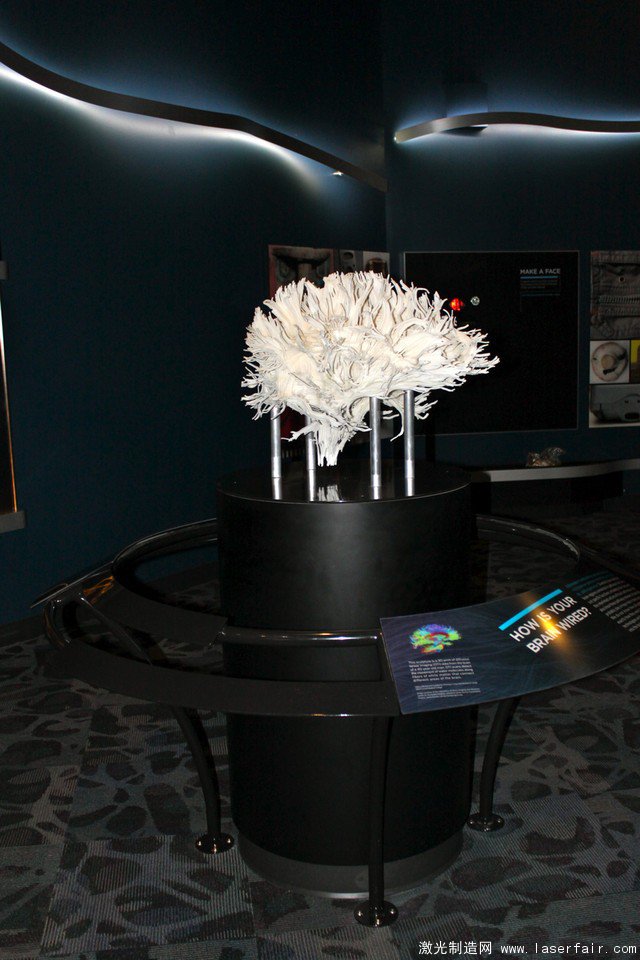 盡管現代醫學的發展使得腦部掃描已經很容易實現,但是人類大腦對科學家們來說仍然是人體上最為神秘的器官。近日美國費城富蘭克林學院的展覽《腦》就為人們揭開了人腦部組織結構的秘密。在豐富的觸手可及的展品中,最為復雜而驚人的就要數3D打印的腦白質模型了。