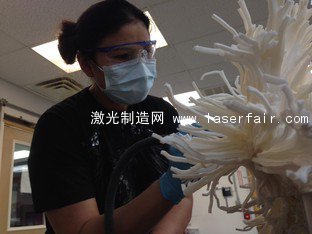 接下來的工作交給美國精密印刷的團隊——他們選擇3D Systems的 sProHD 60激光燒結3D打印機,將3D數字模型分割為10個部分,逐個打印出來再組裝完成。打印每個部分花費了20到22個小時,所以光是打印這個模型就花了200到220個小時。