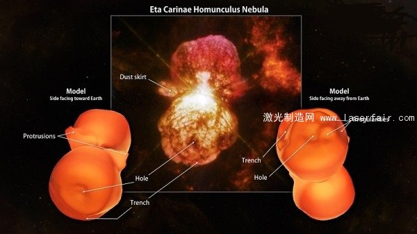 日前美國宇航局(NASA)研究人員不僅成功地繪制出整個海山二星(Eta Carinae)矮人星云的星圖,而且還制作出了該星云自19世紀爆發以來產生的擴張云的3D模型。