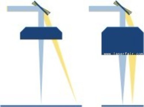 掃描振鏡頭有兩種聚焦激光束的方式,一種叫做前物鏡(pre objective scanning),另一種叫做后物鏡(Post objective scanning)。(圖2 兩種掃描形式)