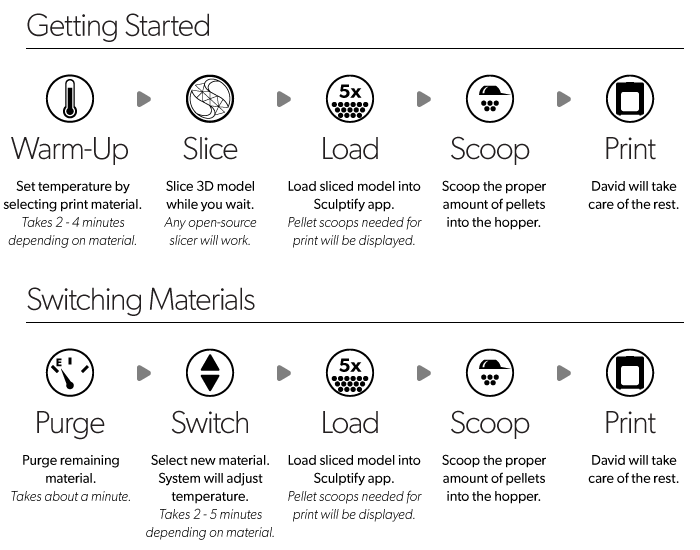 “當然,我們的系統對于塑料顆粒的質地、大小和形狀還是有一定的要求的。有些塑料顆粒可能根本不適合David使用。”Sculptify公司稱:“因此,公司建議您最好購買Sculptify本廠生產的材料。”